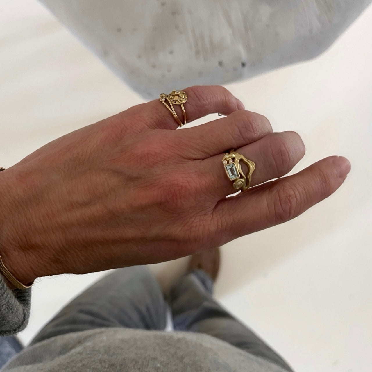 This 18 carat ring with a tourmaline and 0,015ct TW VS diamond ring has a little world of it’s own going on with elements from the Sea and fish veiltale creating a wonderful flow.